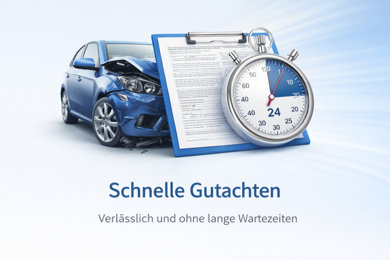 Wir erstellen Ihr Kfz-Gutachten schnell, effizient und zuverlässig. Dank strukturierter Abläufe erhalten Sie ein professionelles Unfall- oder Schadengutachten ohne lange Wartezeiten.